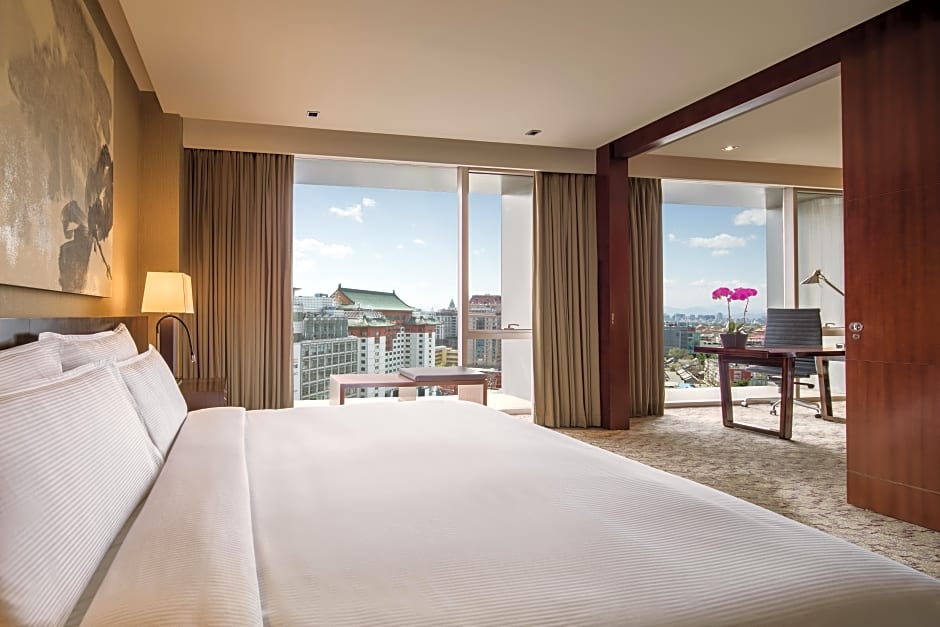Rooms are 45 square yards. With a breath-taking city view of Wangfujing commercial area, this room features workstation and luxury in-room entertainment. Rollaway bed is available at charge.